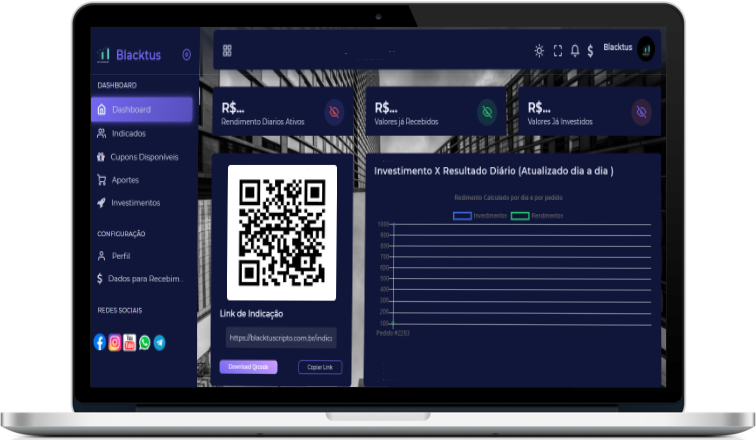 Blacktus esta de parabens empresa muito transparente com seus investidores ja investi e ja saquei e indiquei minha mãe estou amando obrigado Miguel essa empresa vai mudar muitas vidas